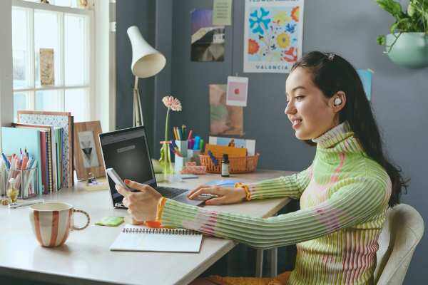 ได้ยินสิ่งสำคัญรอบตัวด้วยโหมดเสียงรอบข้าง โหมดเสียงรอบข้างจะให้คุณรับรู้สิ่งรอบตัว เมื่อเปิดใข้งานโหมดนี้ ระบบจะจับเสียงและกรองเสียงรอบข้าง นอกจากนี้เอียร์บัด WF-C510 ยังมีระบบโฟกัสเสียง ซึ่งช่วยให้คุณได้ยินเสียงพูดของมนุษย์พร้อมกับลดเสียงรบกวนออกไป |