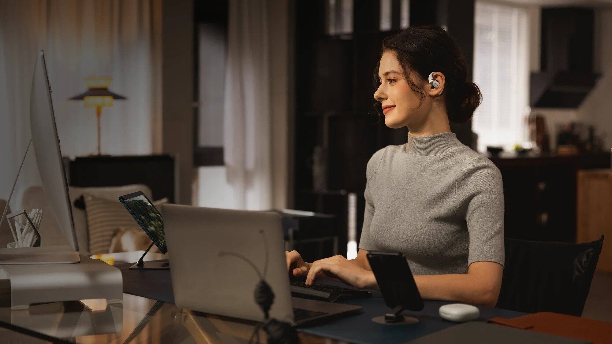 การออกแบบแบบ Open-Ear และน้ำหนักเบาของ OpenFit 2+ ช่วยให้สวมใส่สบายได้ตลอดทั้งวัน และด้วย Ultra-Soft Silicone™ 2.0 ทำให้หูฟัง สวมใส่สบายและเป็นธรรมชาติ เข้ากับชีวิตประจำวันของคุณได้อย่างลงตัว
